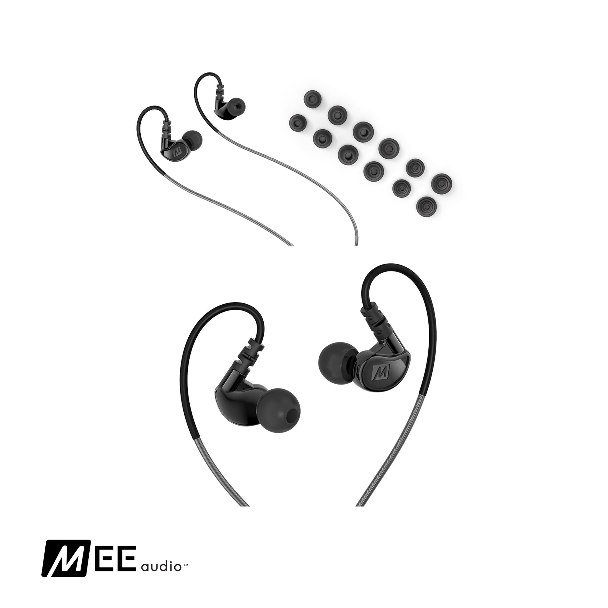 - The Mee Audio M6 sports Earphones utilizes an over-the-ear design with memory wire technology to provide a locked-in, comfortable, noise-isolating in-ear fit for any activity while delivering clear and dynamic sound.
